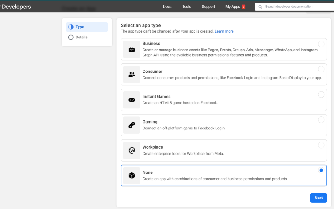 Creating an app by choosing the app type